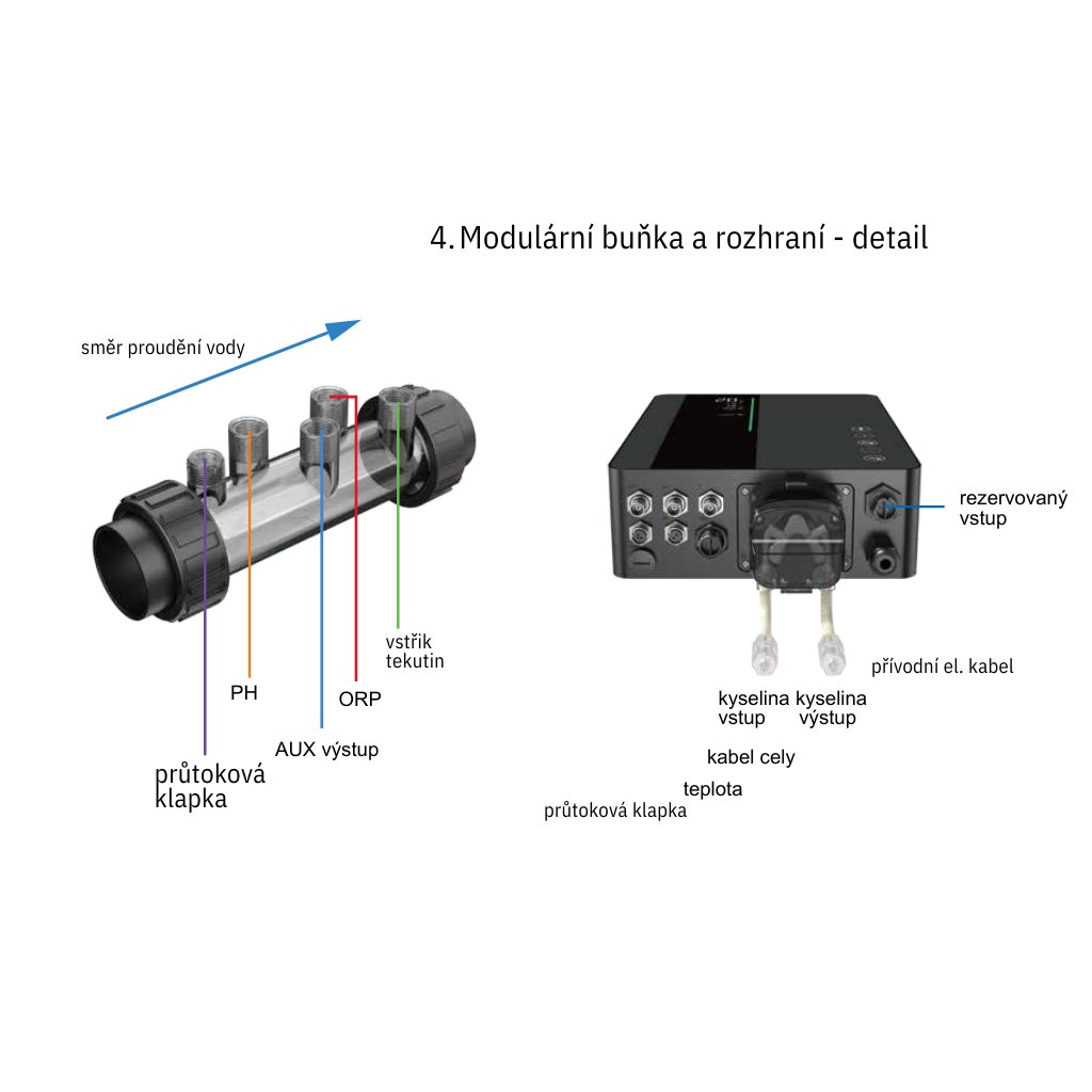 - 2 sondy: na pH a ORP