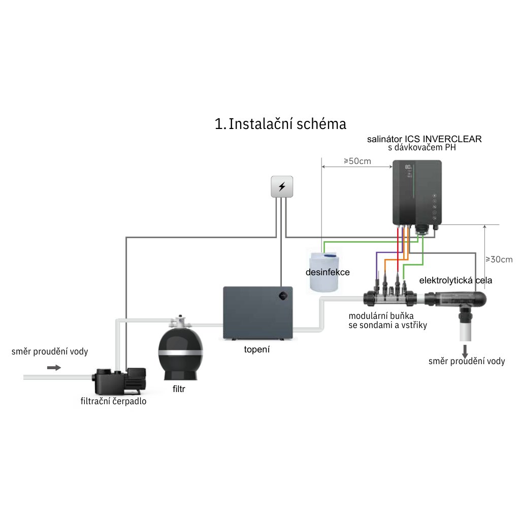 Stačí přidat sůl do bazénu a Automatická dávkovací stanice ICS16 PREMIUM se postará o vše ostatní. Přeměňuje sůl na chlór pomocí elektrolýzy, čímž eliminuje potřebu tradičních chemických přípravků. Zároveň bude automaticky měřit a upravovat hodnotu PH a hodnotu ORP. Čistá a zdravá voda bez podráždění očí a pokožky je nyní na dosah ruky!