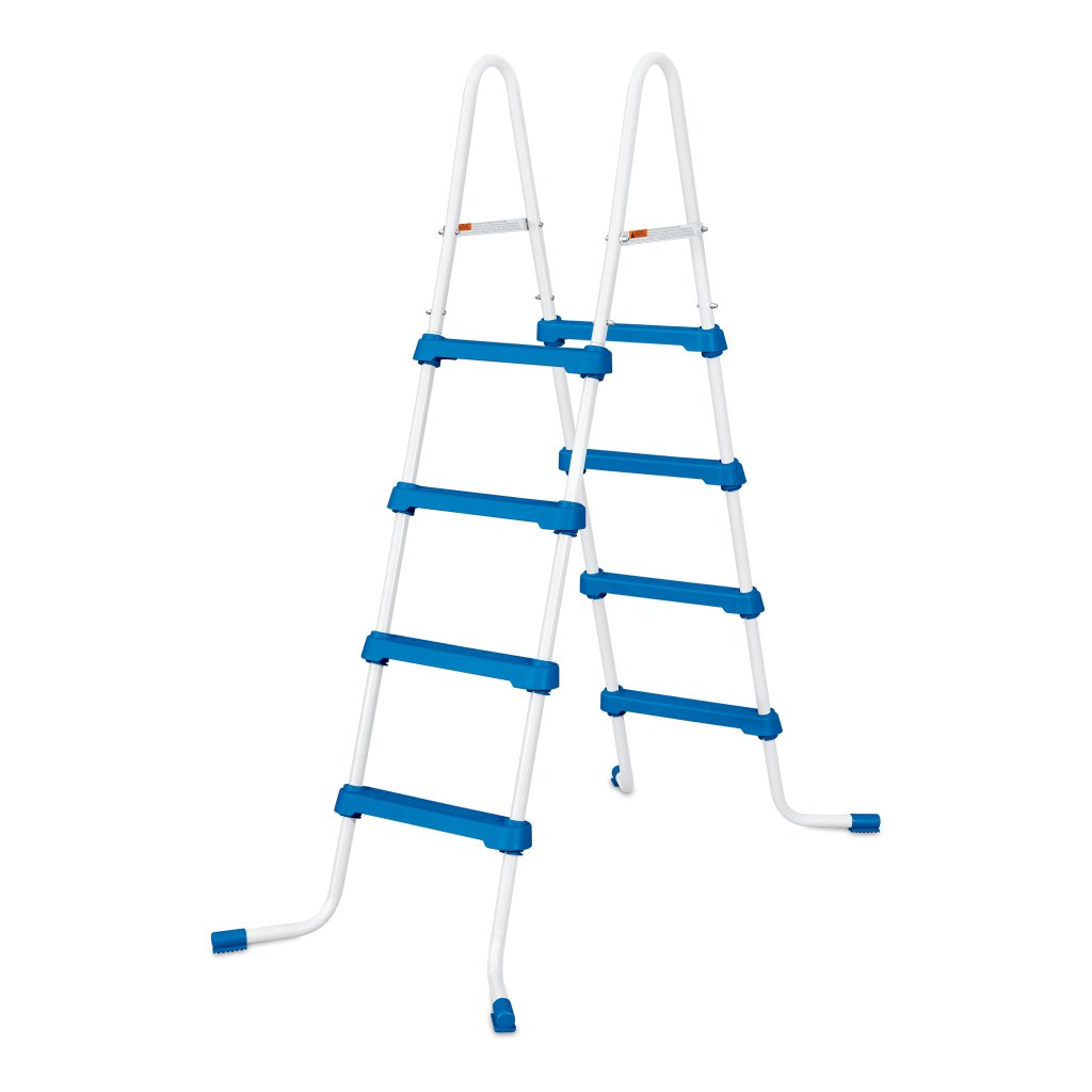 Bazénové schůdky 122 cm pro nadzemní bazény mají kovový rám a plastové stupně s bezpečnostním protiskluzným povrchem. Vysokou nosností až 150 kg. Jsou vyrobeny z vysoce kvalitních ocelových trubek s lakovanou povrchovou úpravou, vyznačují se proto velmi dlouhou životností. Díky lehké konstrukci pohodlně vložíte či vyjmete z bazénu.