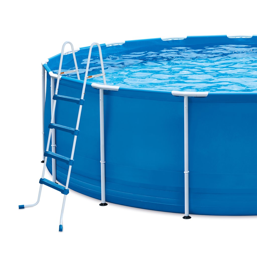 Bazénové schůdky 132 cm pro nadzemní bazény mají kovový rám a plastové stupně s bezpečnostním protiskluzným povrchem. Vysokou nosností až 150 kg. Jsou vyrobeny z vysoce kvalitních ocelových trubek s lakovanou povrchovou úpravou, vyznačují se proto velmi dlouhou životností. Díky lehké konstrukci pohodlně vložíte či vyjmete z bazénu.