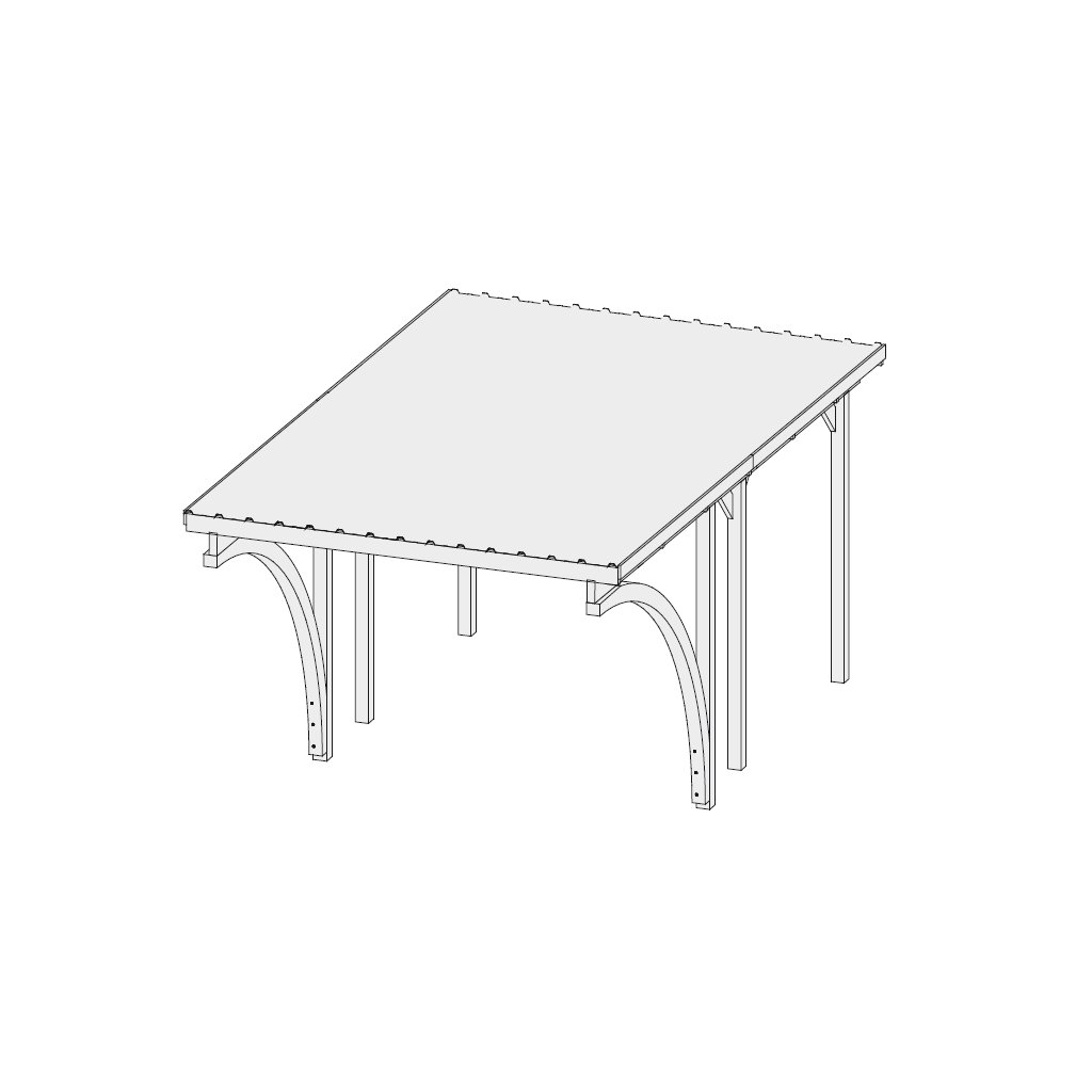 Tento model přístřešku obsahuje dva vjezdové oblouky, které výrazně ulehčují vjezd pod přístřešek z obou stran.