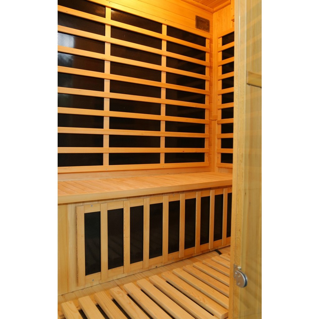 AKCE: Podlahové topení + 3x ručník +2x vonná esence - vše ZDARMA !!!!! Počet osob: 3 Výkon: 2000 W / podlahové karbonové topení Osvětlení: Vnitřní LED Rádio: AM/FM/MP3/USB/SD/Bluetooth Příprava pro MP5: ANO Digitální ovládací panel: ANO vnitří Topná tělesa: 8x karbonová Podlahové topení: ANO Vlnová délka: 5,6-15 ?m Polička na nápoje: ANO 2x Teplotní senzor: ANO Dřevo: kanadský jedlovec Ionizátor: ANO (citronová esence) Barevná terapie: ANO (7 barevných variací) Dveře: tvrzené bezpečnostní sklo Šířka venkovní: 1500 mm Výška venkovní: 1900 mm Délka venkovní : 1100 mm Hmotnost: 125 kg Záruka: 3 roky INFRASAUNA HEALTHLAND DeLUXE 3300 CARBON-BT ENERGETICKY NENÁROČNÉ Provozní náklady jsou u infrasauny nesrovnatelně nižší než u klasické sauny. Provoz infrasauny je výrazně úspornější , hlavním důvodem jsou úsporné keramické nebo karbonové zářiče, infrasauna se nemusí předehřívat jako běžná sauna, provozní teplota v infrasauně je nižší (pocitová teplota je zhruba dvojnásobná). Díky efektivnímu způsobu využití infračerveného záření, které proniká hluboko do tkáně, není zapotřebí vytápět infrasaunu do tak vysoké teploty, jako je tomu u běžné klasické sauny. Infrasauny jsou energeticky nenáročné spotřebiče , náklady na energii se pohybují v závislosti na velikosti infrasauny pro každý Váš pobyt v infrasauně okolo 4 - 8 Kč. Záleží na velikosti a kapacitě infrasauny, čím větší infrasauna, tím vyšší výkon potřebuje. Níže naleznete tabulku uvádějící průměrnou spotřebu a přibližnou cenu za saunovací cyklus daného typu infrasauny. BAREVNÁ TERAPIE Barevná terapie je elektroniky řízená a skládá se ze 7 základních barevných kompozic, při kterých lze efektivně aktivovat lidské smyslové buňky zklidňující kůži, podporující krevní oběh, nebo zmírňující tlak na nervovou soustavu.Barevná terapie má blahodárný vliv na Vaši fizickou a duševní rovnováhu. V lékařství se barevná světla uplatňují již delší dobu právě pro zklidňující účinky. Například červená barva zrychluje krevní oběh, transformuje duševní depresi v optimismus. Modrá barva podporuje vstřebávání bílkovin a kolagenu, posiluje kožní buňky, sklidňuje nervy a uvolňuje tělo. Žlutá barva podporuje buňky s okysličovací schopností, aktivuje mikrocirkulaci, regeneraci kůže atd. Zelená barva blahodárně reguluje funkci buněčných žláz, pomáhá při akné atd. O jaké záření se tedy jedná a co to vlastně je to infračervené záření? Infrasauny jsou zcela bezpečná zařízení, jejichž záření nemá nic společného s UV zářením ani se zářením nukleárním. Infračervené (jinak také nazývané tepelné) záření – je záření o vlnové délce větší, než je vlnová délka viditelného světla. Infračervené paprsky tedy nevidíme, ale vnímáme je jako teplo. Jedná se o podobný princip, jako když Slunce ohřívá Zemi. Toto „zářící teplo“, zahřívá tělesa přímo, aniž by docházelo k zahřívání okolního vzduchu „Saunování“ v infračervené kabině je založeno na principu emise infračerveného záření speciálními karbonovými a keramickými zářiči, které si nechal patentovat dr. Tadaschi Ishikawa v Japonsku již v roce 1965. Toto infračervené záření prohřeje tělo hluboko do svalové tkáně a k intenzivnímu pocení tak dochází již při teplotě okolo 50 °C v prostředí, které nezatěžuje organismus. Po celou dobu pobytu v kabině dýcháte vzduch o teplotě 20 až 55 °C, protože 80–90 % vyzařovaného tepla vstřebá vaše tělo a jen zbytek se rozptýlí do prostoru kabiny. To je zásadní rozdíl mezi klasickou saunou a infrasaunou. Infrasauna je integrované, multifunkční a luxusní zařízení pro léčbu i relaxaci, která společně se saunou zahrnuje v sobě též výhody sluneční lázně. Infračervený paprsek je jejím hlavním zdrojem energie. Vlnová délka infračerveného paprsku je 5,6 – 15 µm a je tělem nejlépe absorbována. Infračervený paprsek může proniknout 40 mm hluboko do lidské kůže, tím dochází k resonanci buněčných tkání v těle, zrychlení krevního oběhu a odstranění nečistot z těla. Proto má sauna velmi dobrý vliv na zdraví. Infrasauny s carbonovým topidlem vyzařují infračervený paprsek v širším spektru než infrasauny s keramickým topidlem. Infrasauny jsou vhodné pro osoby, které se léčí s krevním tlakem, nebo těžce snášejí vysokou teplotu v klasické sauně. Výhody Carbonových infrasaun HealthLand Vyhání z těla jedovaté látky – detoxikace. Toxiny, stejně jako sodík, alkohol, nikotin, karcinogenní těžké kovy a rtuť se postupně hromadí v lidském těle. Infračervené teplo stimuluje potní žlázy, aby pročišťovaly a detoxikovali pokožku. Redukuje stres – Infračervené teplo uvolňuje svaly a uvolňuje tělo např. před masáží. Hodně masérů používá infračervené teplo k většímu a hlubšímu prožitku z masáže. Prospívá Vaší kůži – Infračervené teplo zlepšuje oběh, vylučuje nečistotu a chemikálie aodstraňuje odumřelé kožní buňky. To vše zpevňuje Vaši pokožku a zmírňuje vytváření vrásek. Snižuje váhu – součástí termoregulačního procesu lidského těla je pocení v důsledku zvýšení srdeční frekvence a zrychlení metabolismu. Tělo poté začne vylučovat nadbytečnou vlhkost, soli a podkožní tuky. Tuky se vylučují z těla při teplotě 42°C, když se tělo potí a vylučují se zněj škodlivé látky. Vhodný doplněk pro redukci váhy. Za 30 min. spálí až 600 cal. Úleva od bolesti – infračervené teplo ulevuje od bolesti tím, že se v těle rozšiřují krevní cévy a zrychluje oběh, kterým pak proudí více kyslíku, rychleji se dostává k poraněným míst