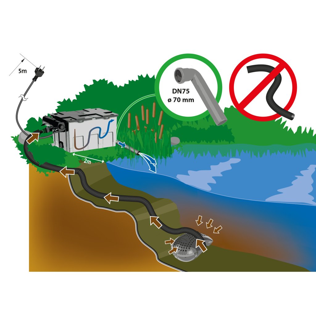 Umístěte čerpadlo: čerpadlo dejte na opačnou stranu od filtračního systému pro přirozenou cirkulaci vody. Hadici a kabely veďte bezpečně, aby nedocházelo k posunu čerpadla.