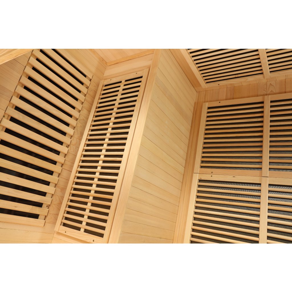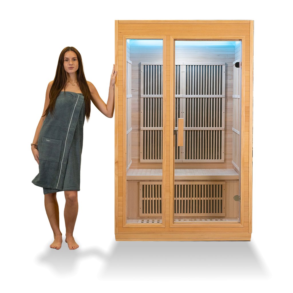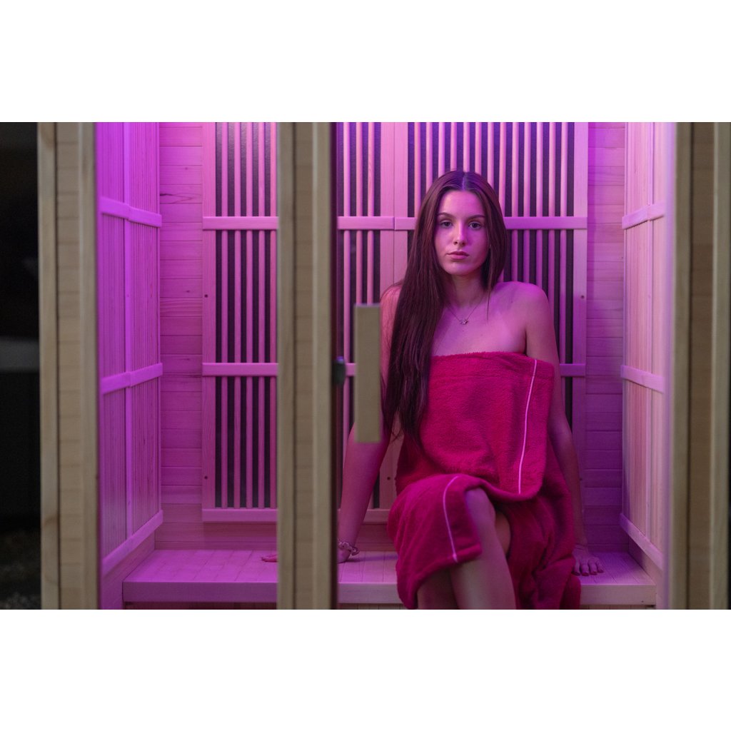 Infrasauna CONSTANCE 2+ je vhodná pro dva dospělé. Vyznačuje se kvalitním řemeslným zpracováním, elegantním designem a bezpečnostní. Vyznačuje se kvalitou. Je vyrobena z vyzrálého dřeva kanadské jedle s životností přes 300 let. Vyniká minimálním množstvím suků a minimální kazivostí bez výskytu smůly. To v konečném důsledku znamená, že při pobytu v sauně ucítíte pouze příjemnou vůni dřeva bez vedlejšího zápachu.