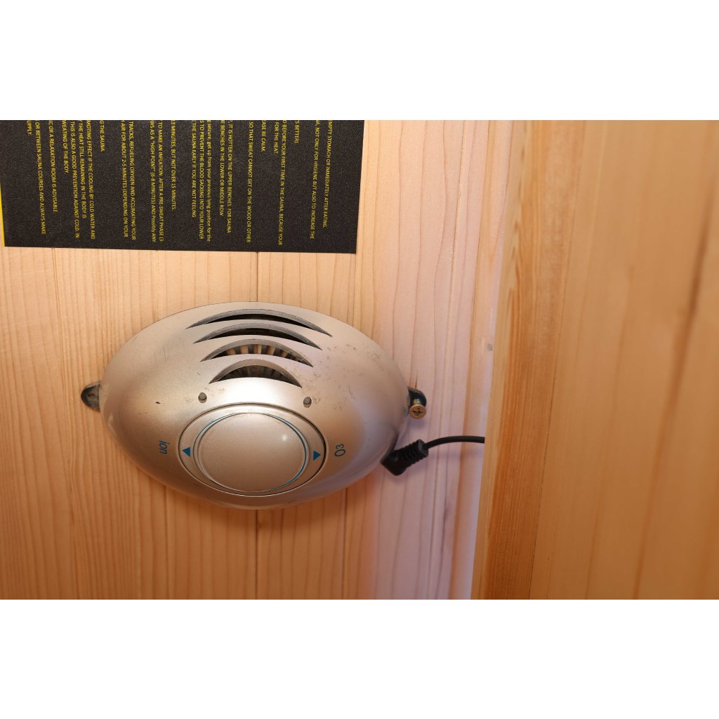 - Pro regulaci správné teploty uvnitř sauny-infrasauny můžete použít přenosný stropní ventilátor. Toto umožní rychlejší a rovnoměrnější rozložení tepla.