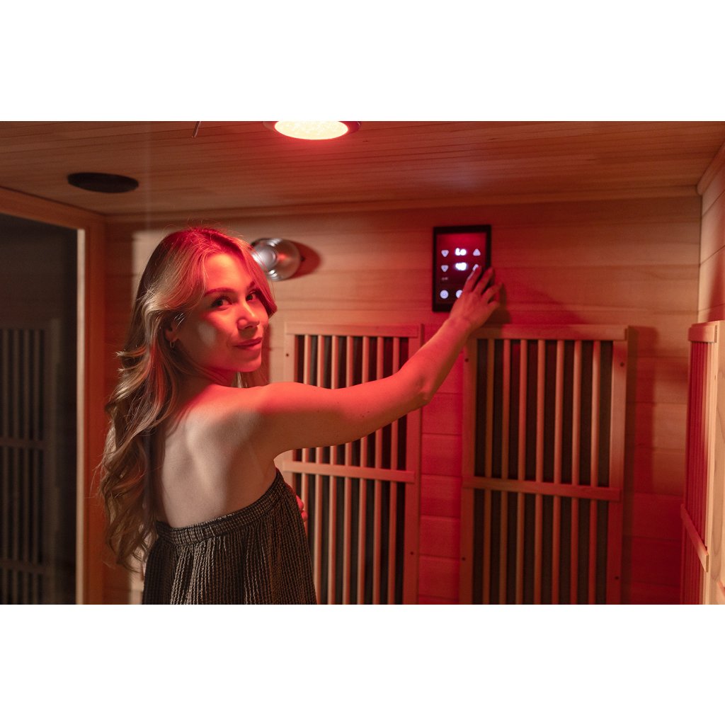 Nová generace infrasaun s označením 2+ přináší hned několik vylepšení. První z nich je podlahový infrazářič 50W, díky kterému budou prohřátá i Vaše chodidla a nohy. S pokrokem novým technologií přichází i Bluetooth Sound Systém, který je párovatelný se smatphony. Přehrávat si tak budete moci svou oblíbenou hudbu přímo z telefonu. A v neposlední řadě tento model přináší inovaci ve formě LED barevné chromoterapie, která napomáhá ještě k lepšímu uvolnění těla a mysli.