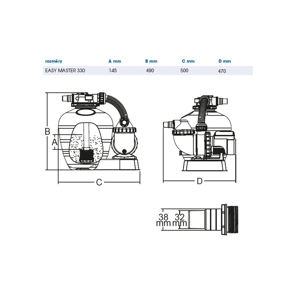 - Napojení přez hadice 32 a 38 mm.