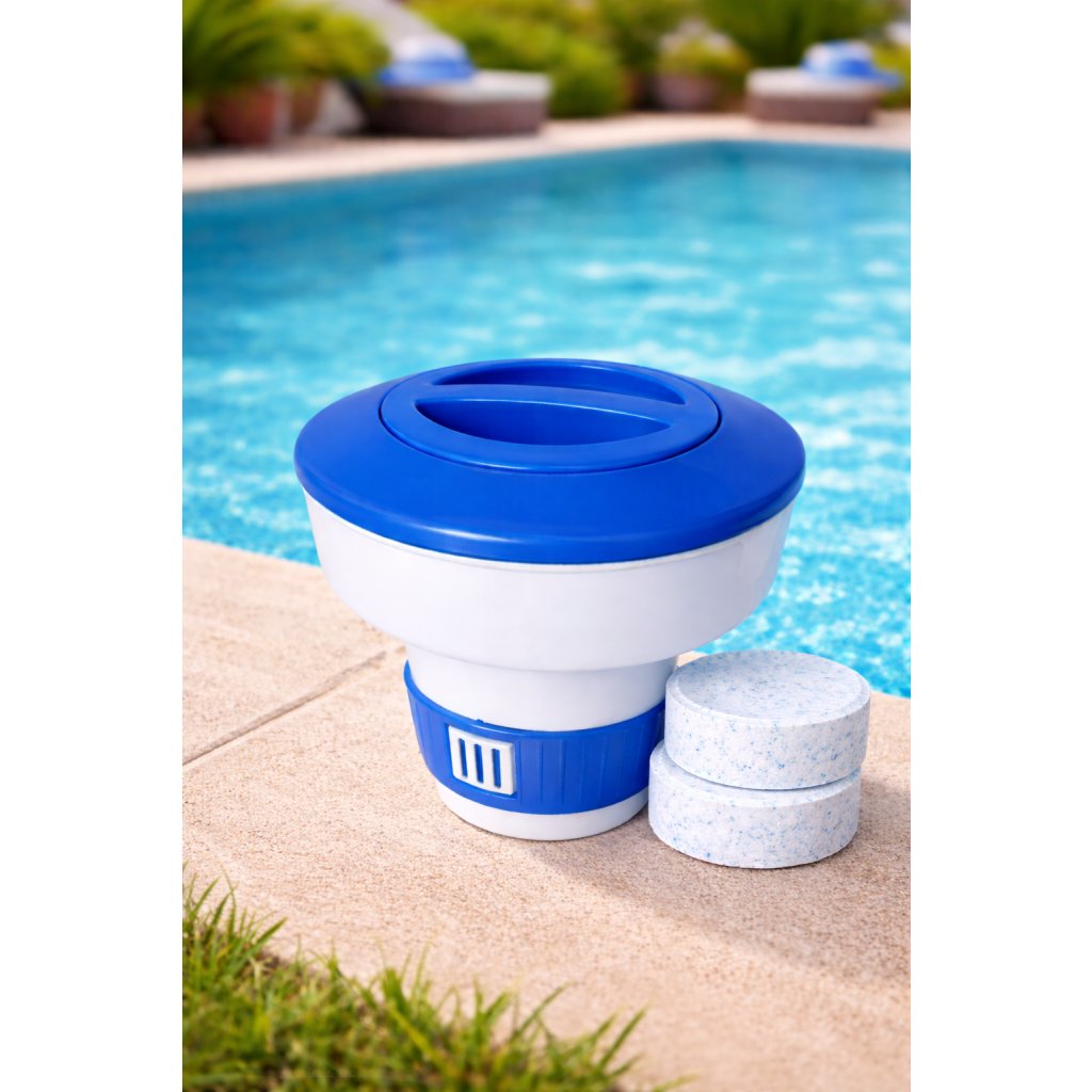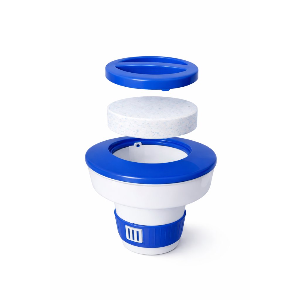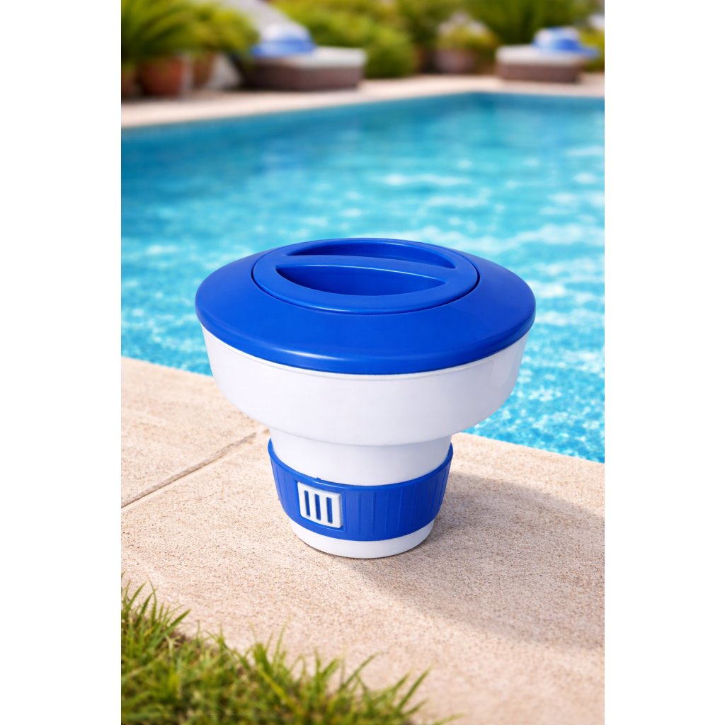 Tento plovák je určen pro maxi tablety (200 g) a pokládá se přímo na vodní hladinu bazénu. Díky posuvnému uzávěru můžete regulovat, jak rychle se bude tableta rozpouštět.