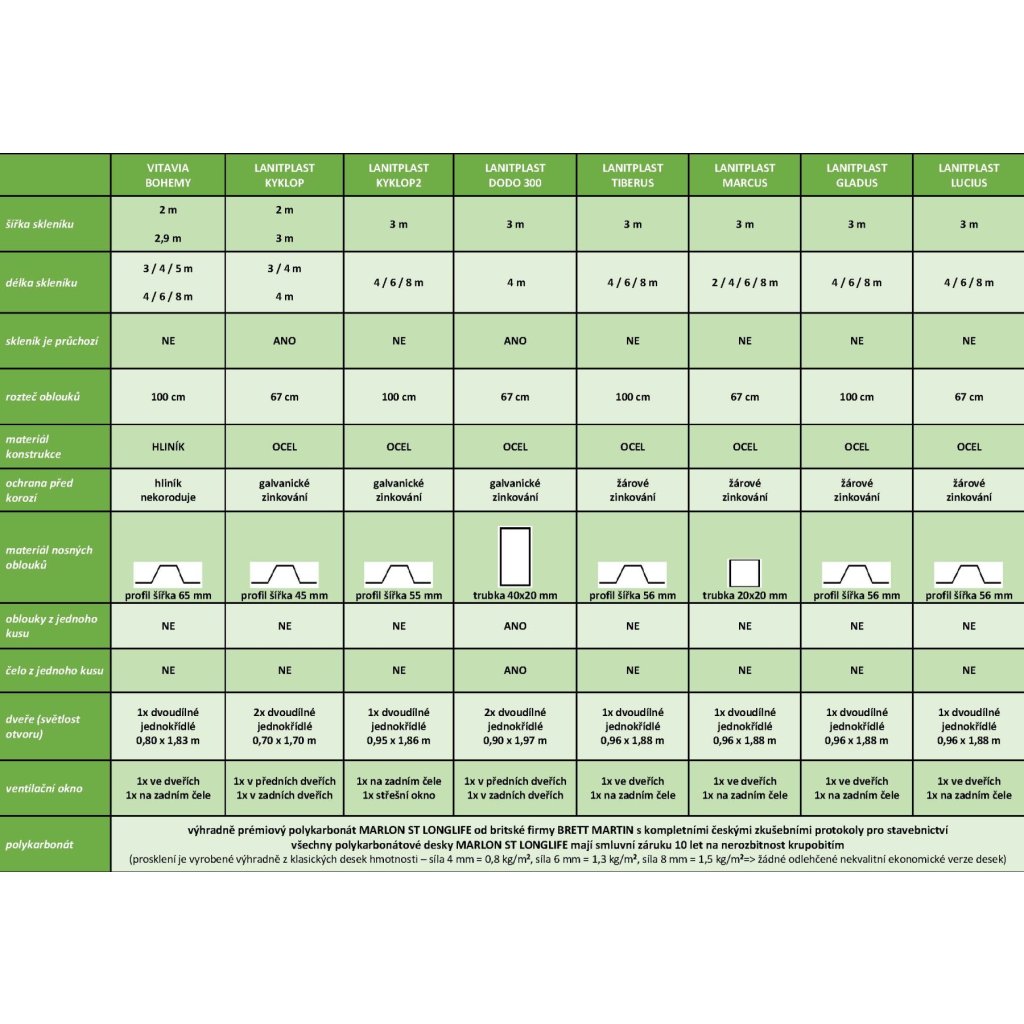 Porovnání modelových řad obloukových skleníků VITAVIA BOHEMY: