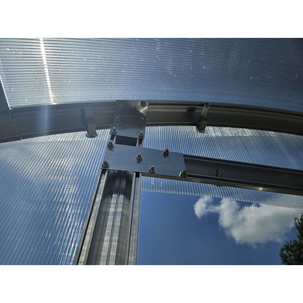 Konstrukce skleníku je sešroubována ze silných hliníkových profilů (masivní 1 mm silný a 65 mm široký eloxovaný hliníkový profil) a doplněna prémiovým komůrkovým polykarbonátem s UV filtrem od britské firmy BRETT MARTIN s prodlouženou smluvní zárukou 10 let na nerozbitnost polykarbonátu krupobitím. Tato kombinace dělá ze skleníků řady VITAVIA BOHEMY jeden nejkvalitnějších a současně na montáž nejjednodušších skleníků na českém trhu. Jednotlivé profily se vzájemně sešroubují a po jejich sestavení vznikne velmi stabilní oblouková konstrukce bez nutnosti stavby skleníkové podezdívky. Skleník je vybaven kotvami přímo do země. Montáž skleníku zvládnete svépomocí ve dvou až třech osobách. V půdě se zahradní skleník upevňuje zakopáváním patek konstrukce do země, případně jejich zalitím do betonu (doporučujeme).