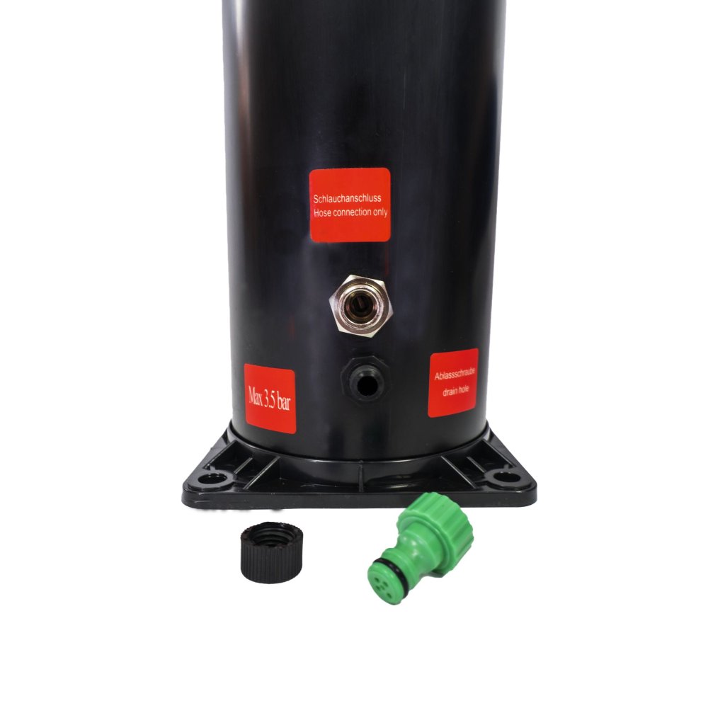 Rodinami oblíbená solární sprcha s XXL zásobníkem o objemu 40 l a velkou sprchovací hlavicí, která zajišťuje příjemné sprchování připomínající lehký letní deštík. Sprcha je vyrobena z kvalitního PVC odolného vůči UV záření. Elegantní vzhled sprchy podtrhuje čelní část imitující nerez. Sprcha je vysoká 220 cm a je vybavena praktickým kohoutkem na oplach nohou. Připojení na přívod vody je velmi jednoduché pomocí hadicové rychlospojky (součástí balení).