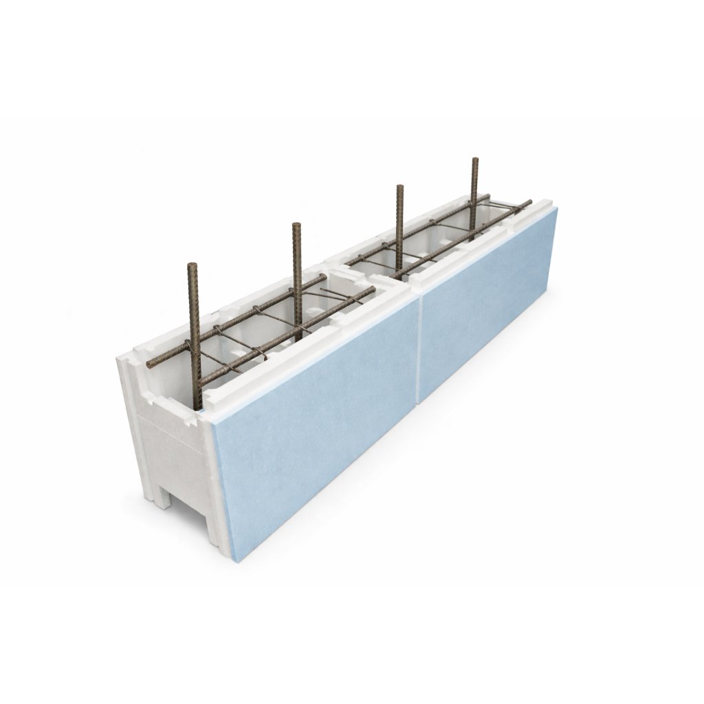 Rozměry: 125 D x 25 Š x 37,5 V cm: delší a vyšší než standardní betonové a jiné polystyrenové tvárnice